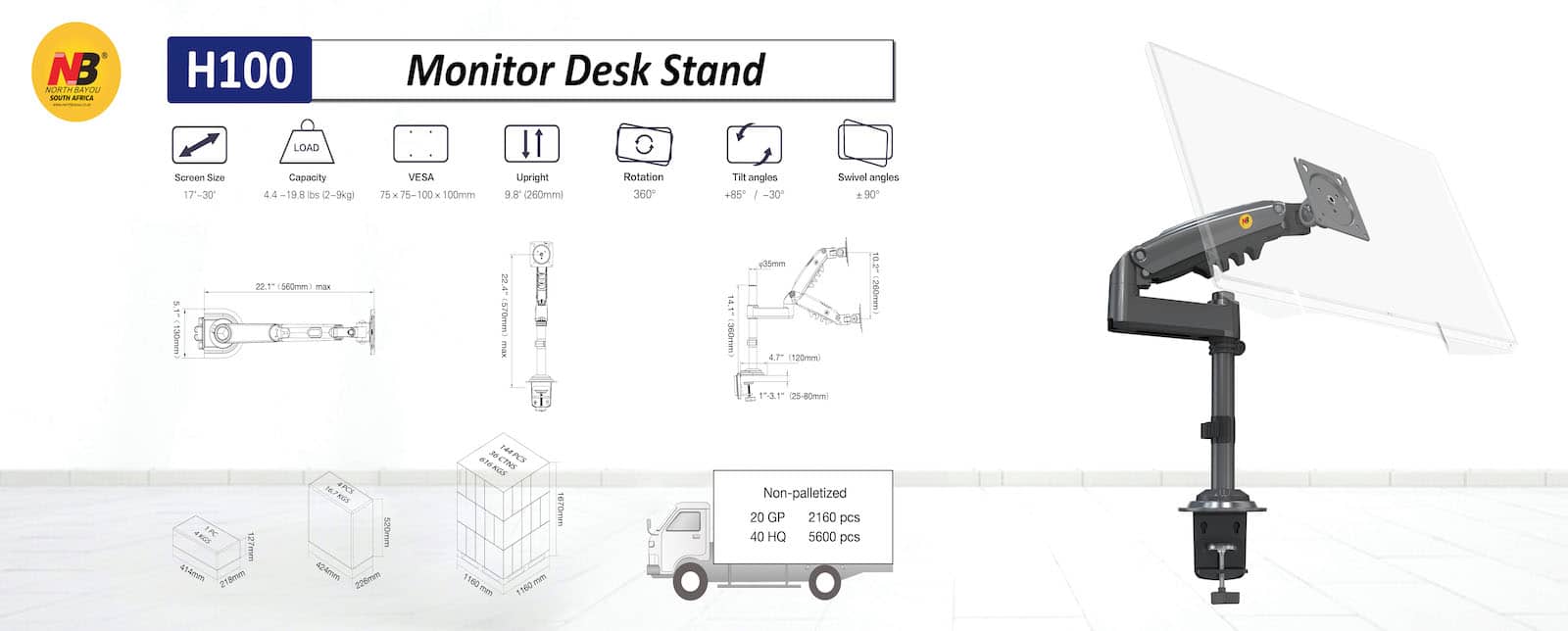 Unboxed – Swivel monitor desk mount for 22″-35″ screens (H100)